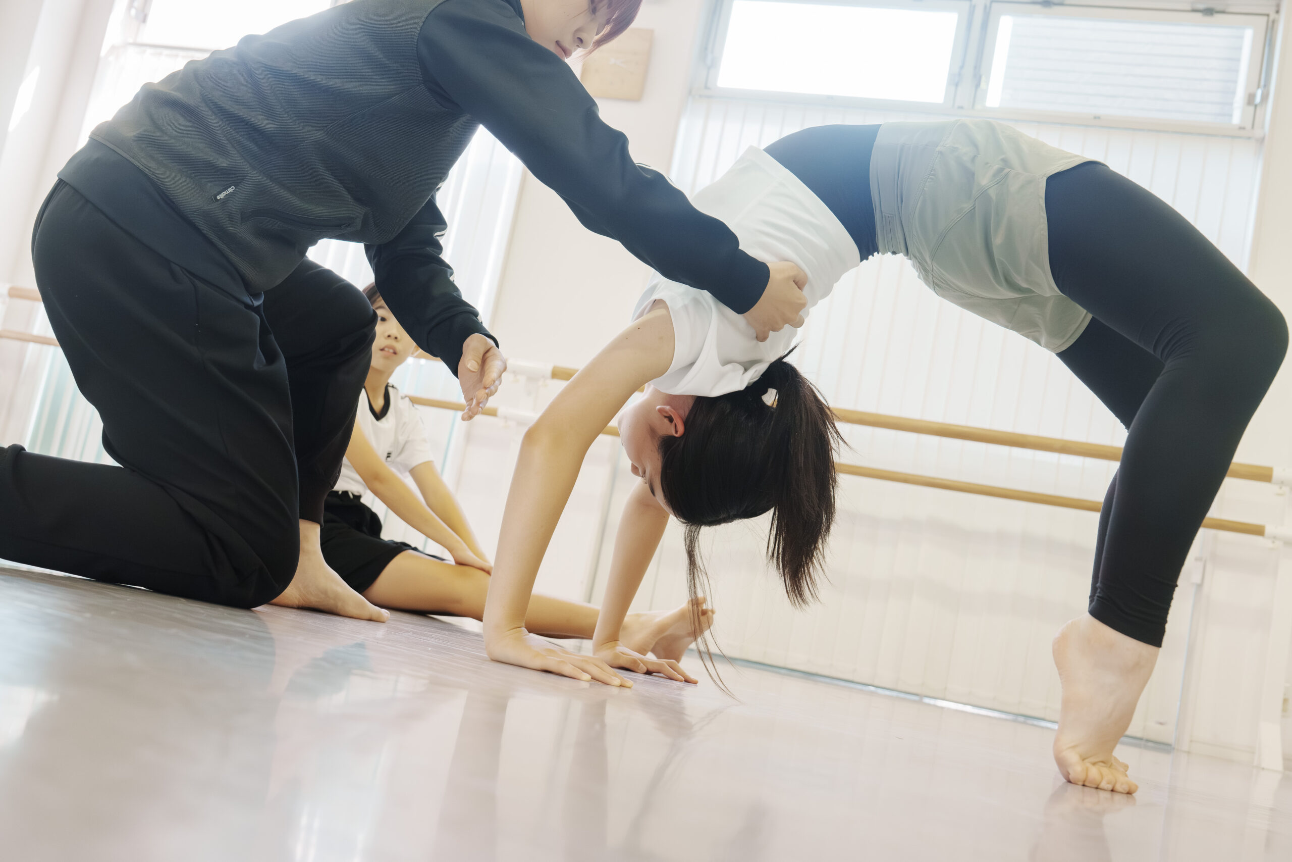 レッスンでは、体の軸を意識した立ち方や足の使い方など、基礎から丁寧に学んでいきます。